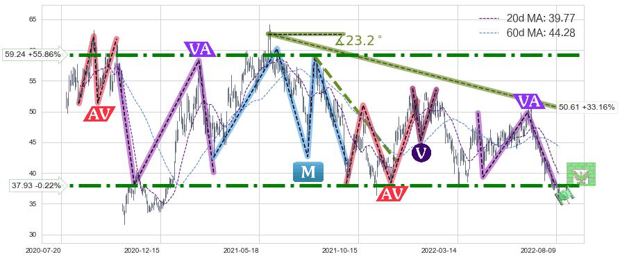 ♘ 阻力价格位37.93,可信任强度90.35%,距离最后交易2022-08-12形成的收盘价格38.01相差 -0.22%