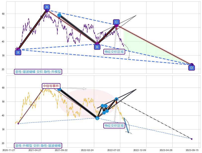 ➢ 谐波蝴蝶属【中级别信号事件】头肩顶属【长级别信号事件】中长周期组合信号事件,中长事件长度比56.56%