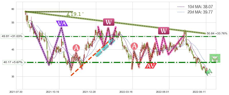 ♘ 阻力价格位40.17,可信任强度77.04%,距离最后交易2022-08-12形成的收盘价格38.01相差 +5.67%