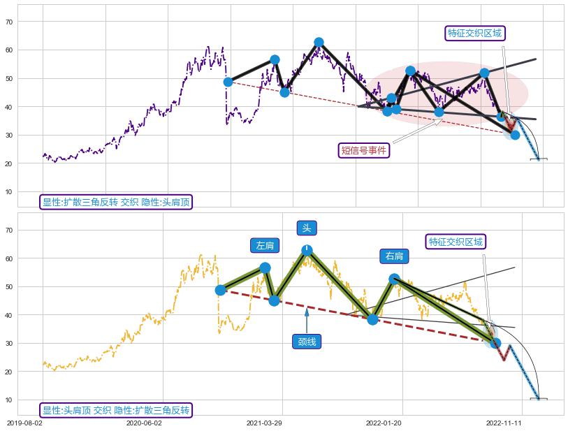➢ 扩散三角反转属【短级别信号事件】头肩顶属【长级别信号事件】长短周期组合信号事件, 短长事件长度比25.98%
