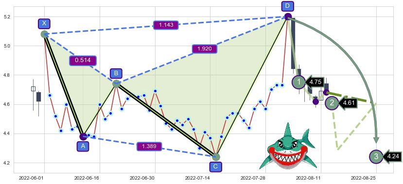 ➣ 已完成【鲨鱼】形态起点X: 2022-06-01, 终点D: 2022-08-03, 共45交易日