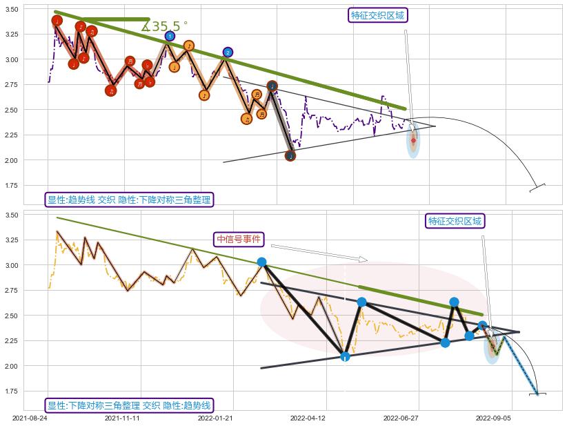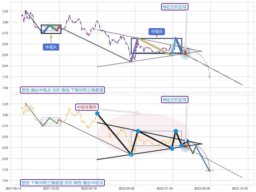 ➢ 下降对称三角整理属【中级别信号事件】缠论中枢点属【长级别信号事件】中长周期组合信号事件,中长事件长度比55.81%