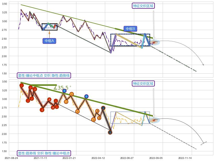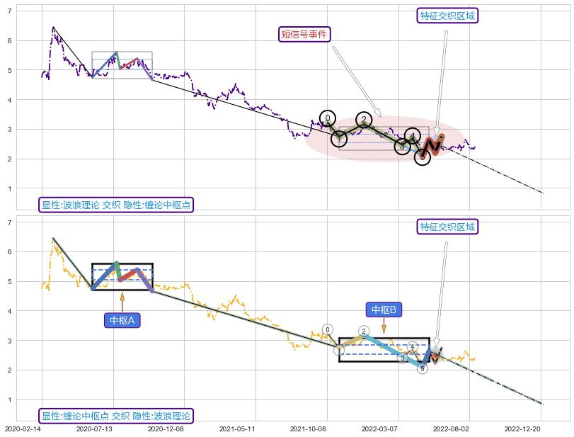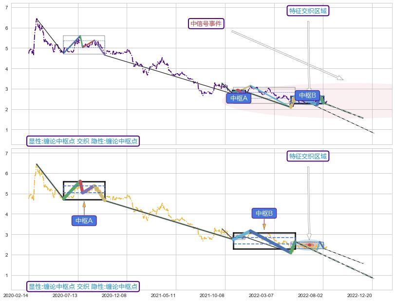 ➣ 【中枢B】:2022-04-26-2022-08-03,中枢由5笔构成,共68交易日, ZG=2.630, ZD=2.300