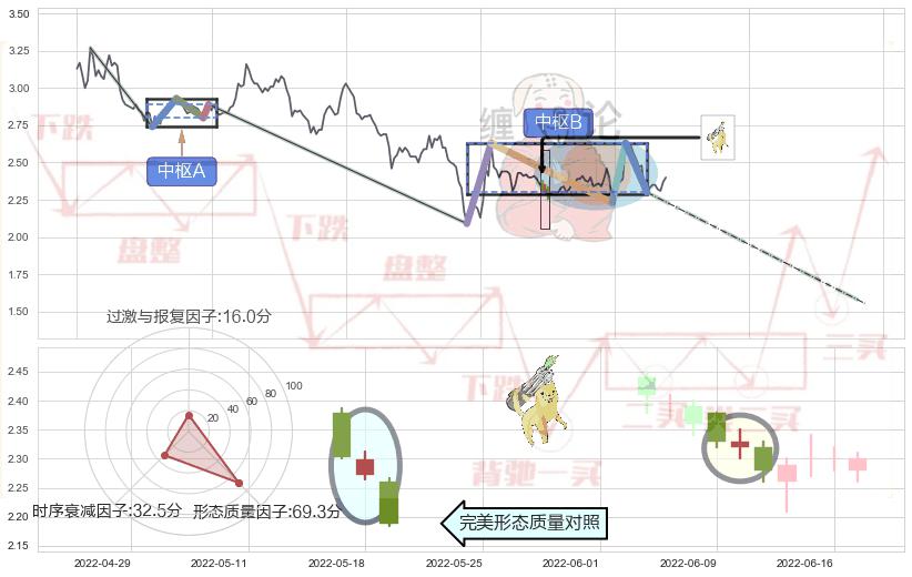 ➢ 趋势线临近恢复下跌趋势 🔜 缠论中枢点破位中枢B支撑下拉 综合量化分数:43.17 【偏空】
