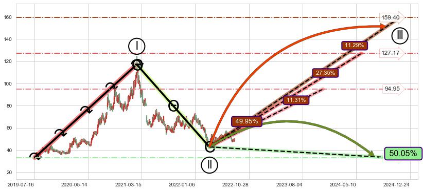 ➢ 大趋势走坏(跌破5浪起点位置)概率50.05%