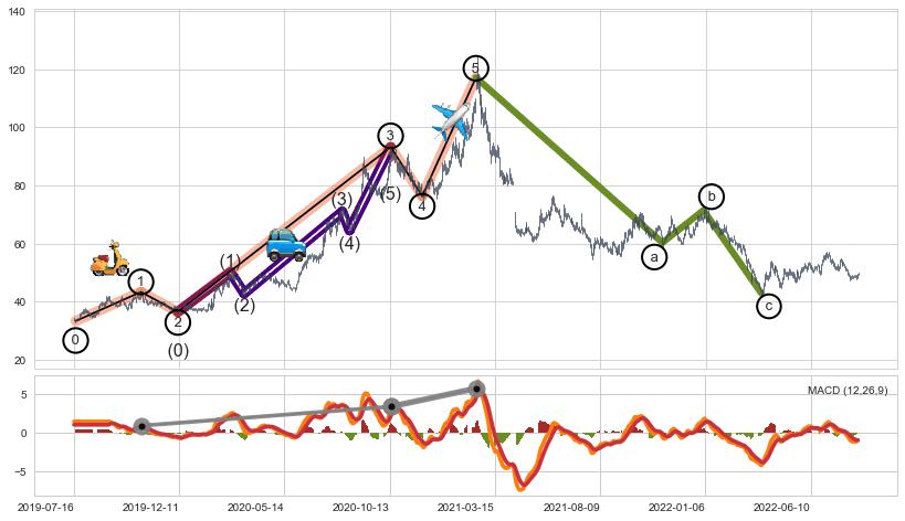 ➢ 波浪理论:猜想达到c点后小回调终止反转上涨 → 上涨 → 【拐点】临近 → 阶段均值回复结束后继续大周期趋势跟踪