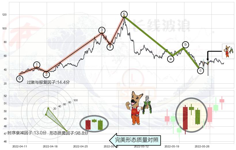 ➢ 上涨身怀六甲 🔜 波浪理论c点回调终止反转上涨 综合量化分数:54.38 【偏多】