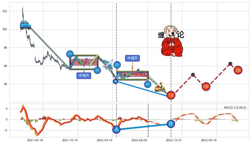 ➢ 缠论中枢点:猜想破位中枢B后持续下拉 → 下跌 → 破位中枢B支撑 → 持续趋势跟踪