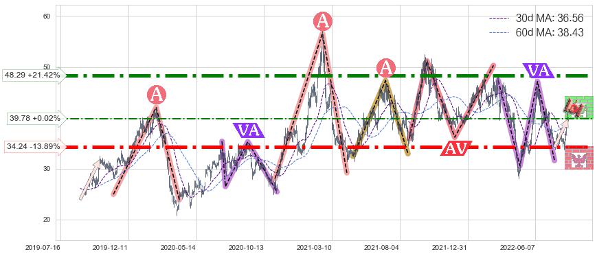 ♘ 阻力价格位39.78,可信任强度52.29%,距离最后交易2022-08-12形成的收盘价格39.77相差 +0.02%