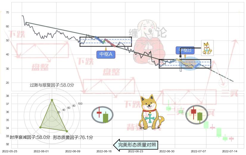 ➢ 下跌孤独十字星 🔜 缠论中枢点破位中枢B支撑下拉 综合量化分数:44.01 【偏空】
