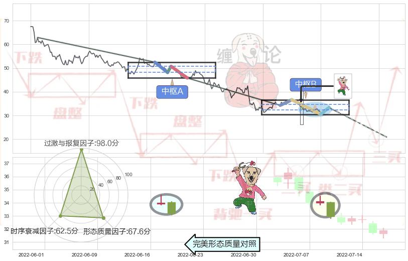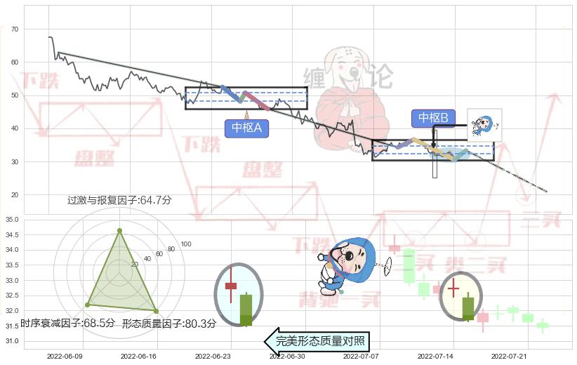 ➣ 下跌螺旋桨 + 缠论中枢点破位中枢B支撑下拉信号叠加后【信号初始稳固度】中等,【看空】信号叠加【可信度影响中等】