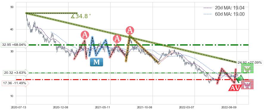 ♘ 阻力价格位20.32,可信任强度39.58%,距离最后交易2022-08-12形成的收盘价格19.61相差 +3.63%