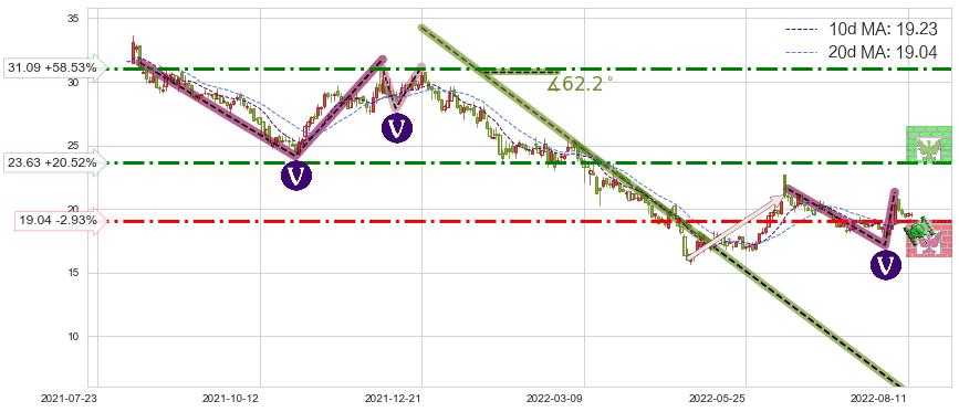♘ 阻力价格位23.63,可信任强度55.25%,距离最后交易2022-08-12形成的收盘价格19.61相差 +20.52%