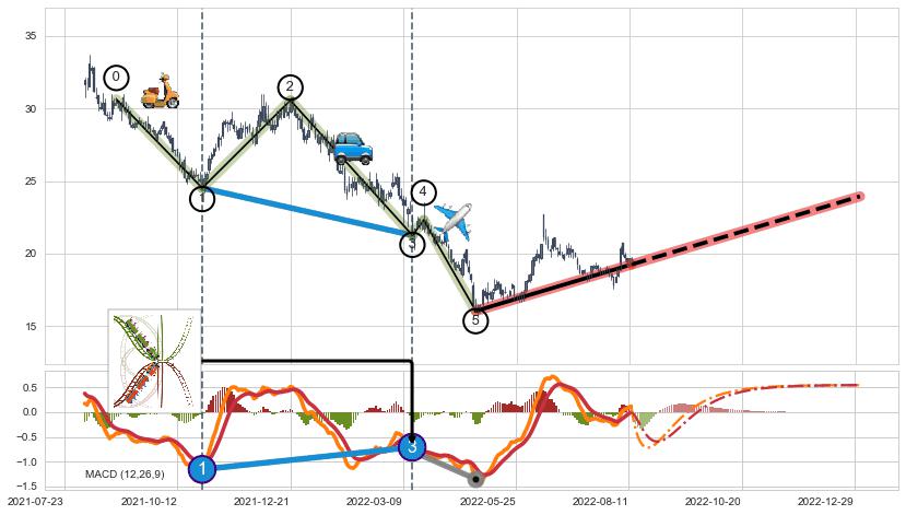 ➣ 波浪理论:猜想止跌 → 上涨 →【拐点】浪5已完成 → 大趋势均值回复