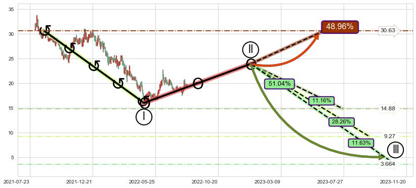 ➣ AI预测: 假定反转启动后, 第❶目标位置(2022-12-28, 21.64)
