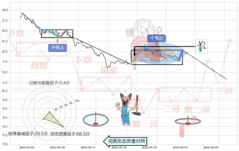 ➣ 射击之星形态 + 缠论中枢点破位中枢B支撑下拉信号叠加后【信号初始稳固度】中等,【看空】信号叠加【可信度影响中等】
