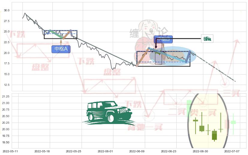 ➣ 【中枢B】:2022-05-27-2022-08-05,中枢由4笔构成,共45交易日, ZG=20.38, ZD=17.81