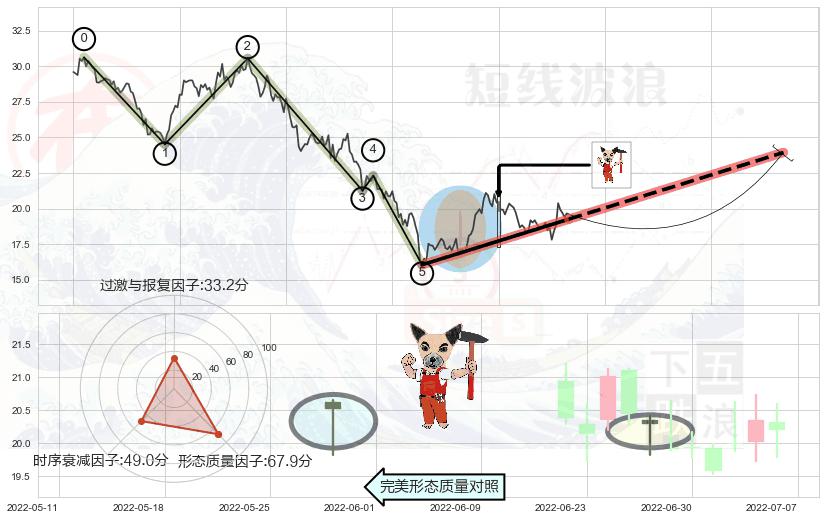 ➢ 看涨(低位)倒锤头线 🔜 波浪理论下跌浪:浪5反弹拐点 综合量化分数:51.55 【中性】
