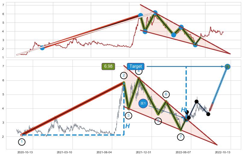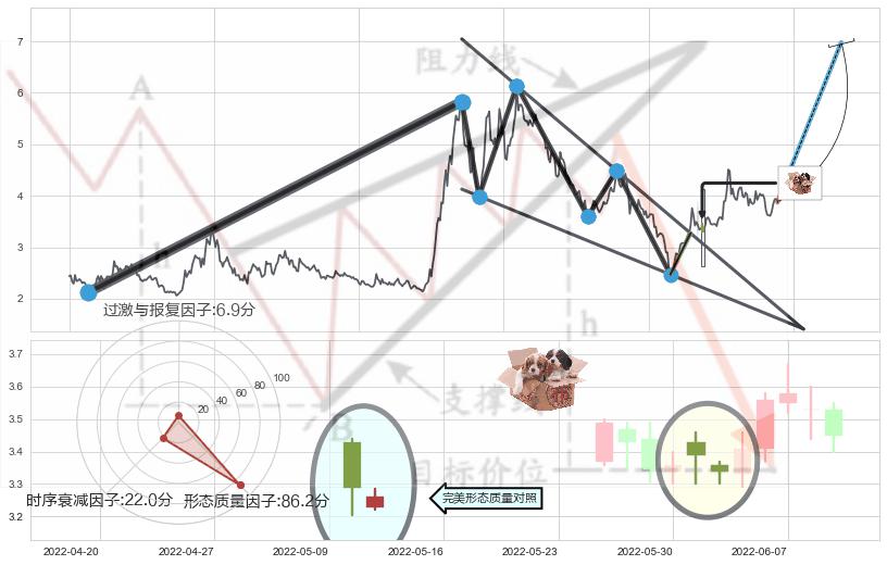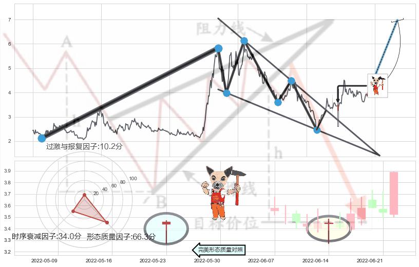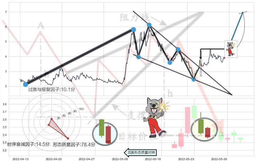 ➢ 【买1】: 激进型 买点 →(2022-05-19: 3.270 )形成突破降🚩楔型【整理】形态