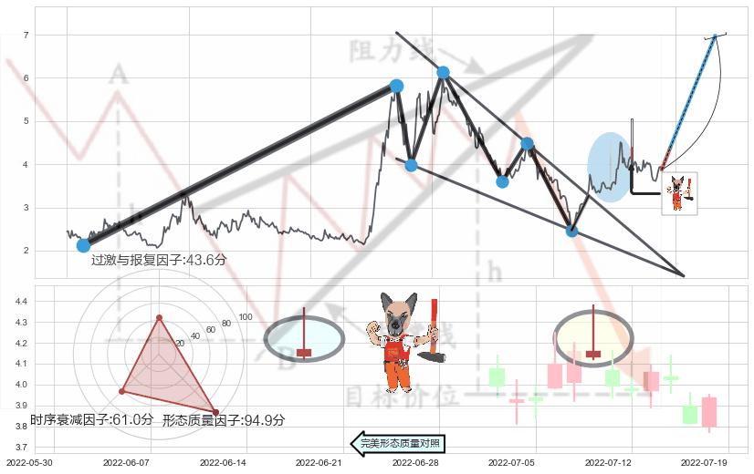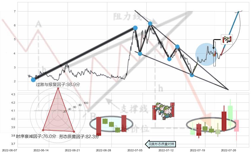➢ 🕰 价格走势在2022-07-18至2022-07-22期间形成上升三部曲(升势三鸦),残存影响值:4.37