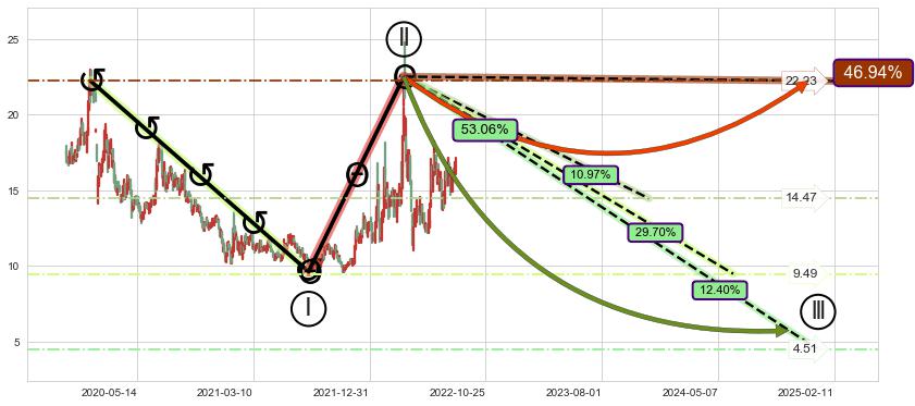 ➣ 大趋势循环浪继续向下概率53.06%