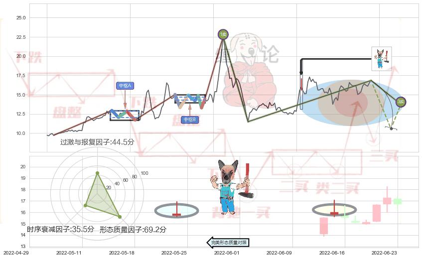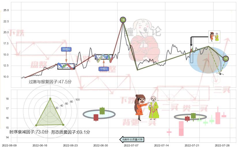 ➢ 🕰 价格走势在2022-06-27至2022-07-11期间形成空方炮,残存影响值:-1.79