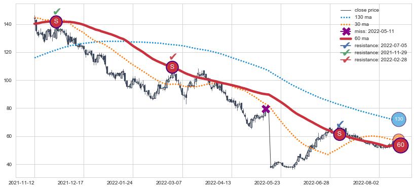 ➣ 45小时均线于(2022-07-27: 54.49)形成【死叉】基于【死叉历史模型】预测死叉后最低波谷价格: 35.69, 死叉后最低价格51.57,尚未达到预测最低波谷价格, 预期继续下跌