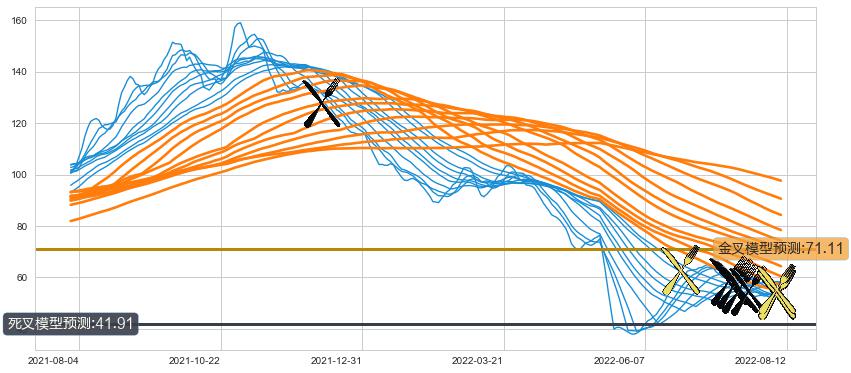 ➣ 34小时均线于(2022-07-20: 57.23)形成【死叉】基于【死叉历史模型】预测死叉后最低波谷价格: 41.38, 死叉后最低价格51.57,尚未达到预测最低波谷价格, 预期继续下跌