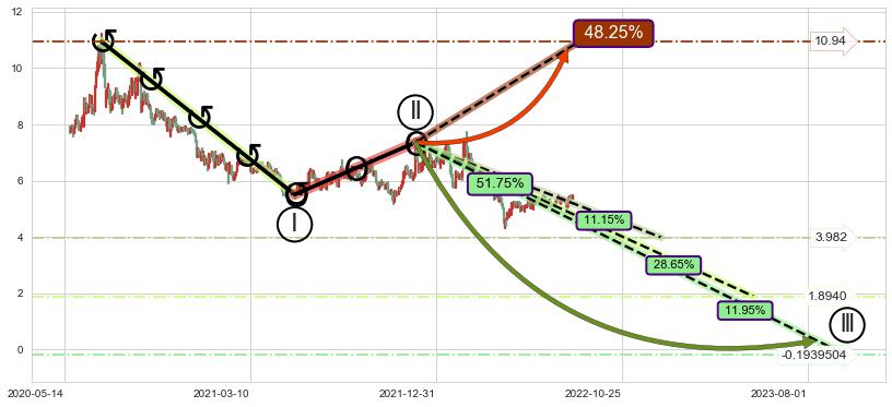 ➢ 循环浪继续向下【最高】位置(2022-12-23, 3.982),匹配聚类样本比例21.54%, 可能性概率11.15%