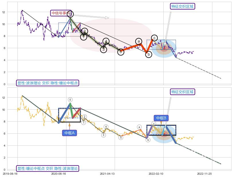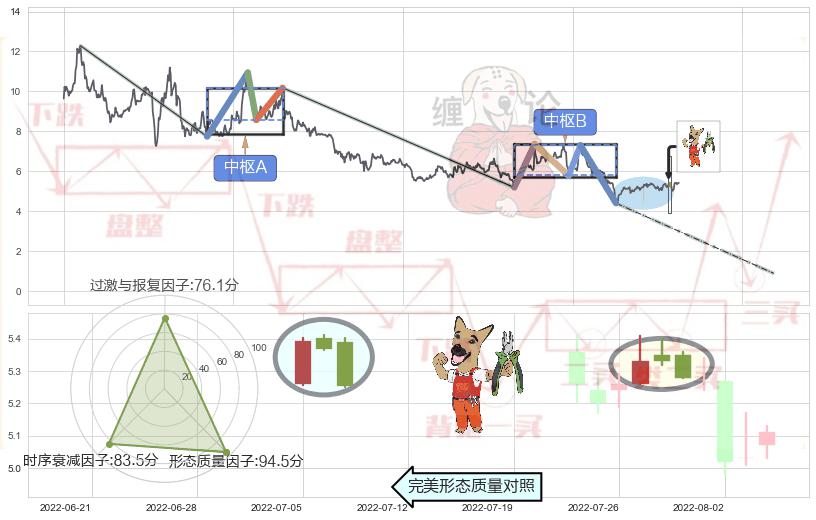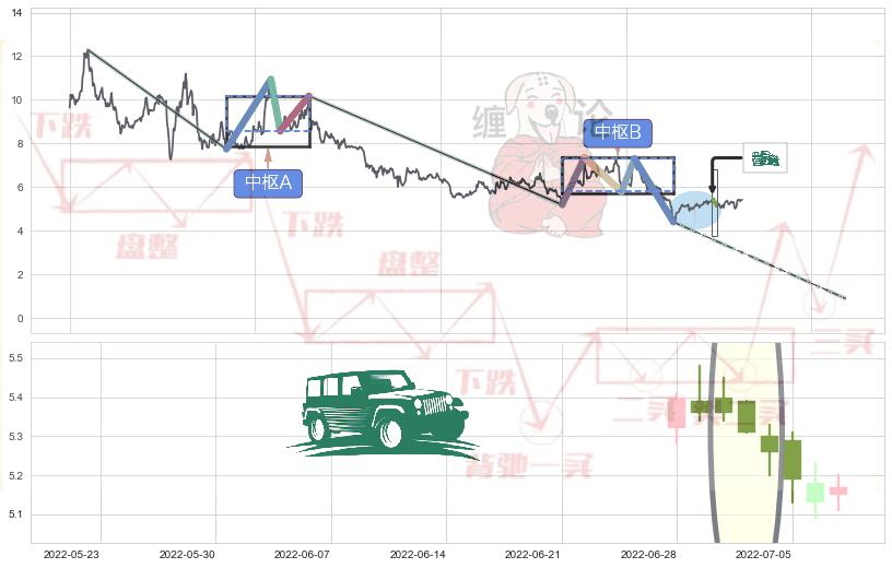 ➣ 【中枢B】:2021-10-28-2022-04-26,中枢由5笔构成,共121交易日, ZG=7.30, ZD=5.79