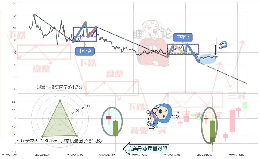 ➢ 下跌身怀六甲 🔜 缠论中枢点破位中枢B支撑下拉 综合量化分数:49.45 【中性】