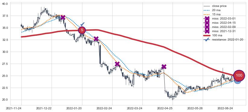 ➣ 70小时均线于(2022-07-07: 23.67)形成【死叉】基于【死叉历史模型】预测死叉后最低波谷价格: 20.52, 死叉后最低价格21.00,尚未达到预测最低波谷价格, 预期继续下跌