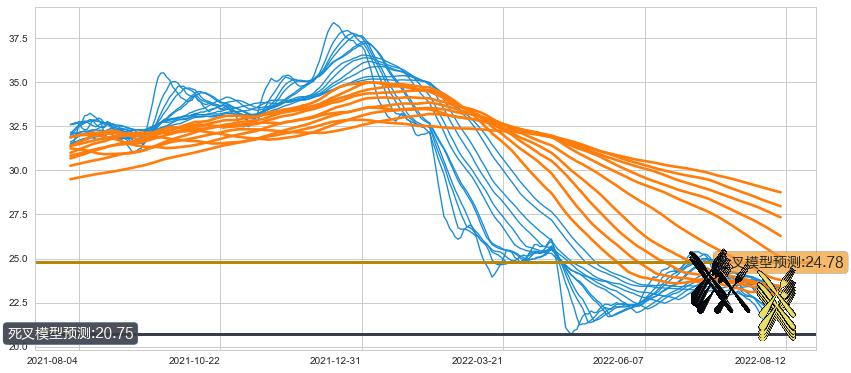 ➣ 40小时均线于(2022-07-07: 23.76)形成【死叉】基于【死叉历史模型】预测死叉后最低波谷价格: 21.48, 死叉后最低价格21.00,已经下跌超出预测最低波谷价格, 预期反弹
