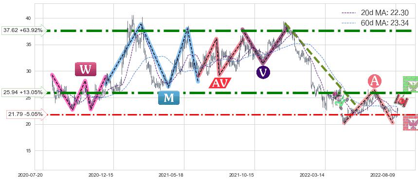 ♘ 阻力价格位25.94,可信任强度88.64%,距离最后交易2022-08-12形成的收盘价格22.95相差 +13.05%