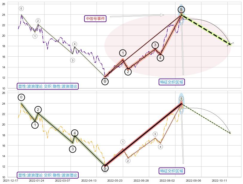 ➢ 波浪理论与降楔型信号事件周期长度级别相同,同周期信号事件