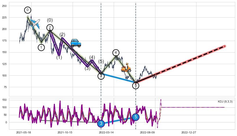 ➣ AI预测: 假定反转启动后, 第❸目标位置(2023-04-10, 84.60)