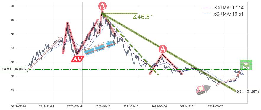 ♘ 阻力价格位24.80,可信任强度55.61%,距离最后交易2022-08-12形成的收盘价格18.23相差 +36.06%