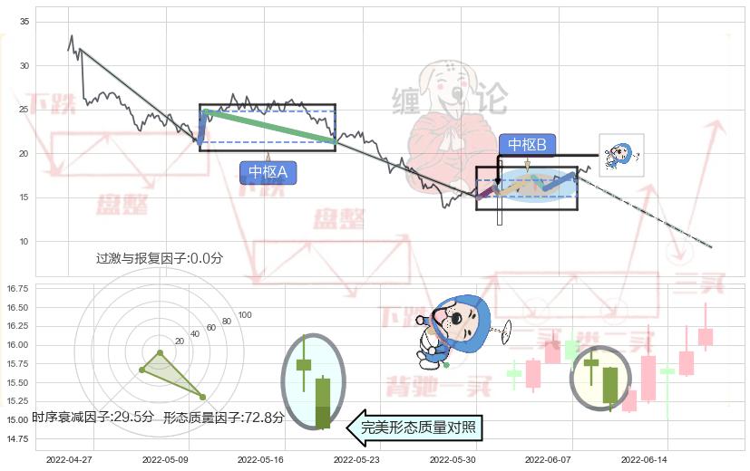 ➢ 下跌螺旋桨 🔜 缠论中枢点破位中枢B支撑下拉 综合量化分数:49.36 【中性】