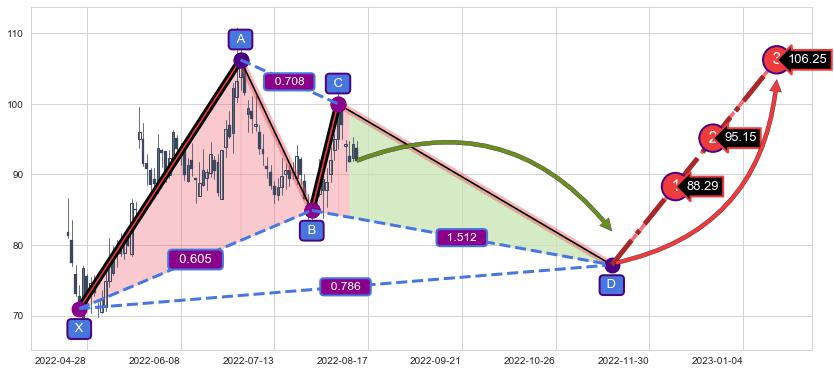 ➣ 未完成【伽利】形态起点X: 2022-04-26, 已到达C点: 2022-08-05, 预测最终D点: 2022-11-16, 共141交易日