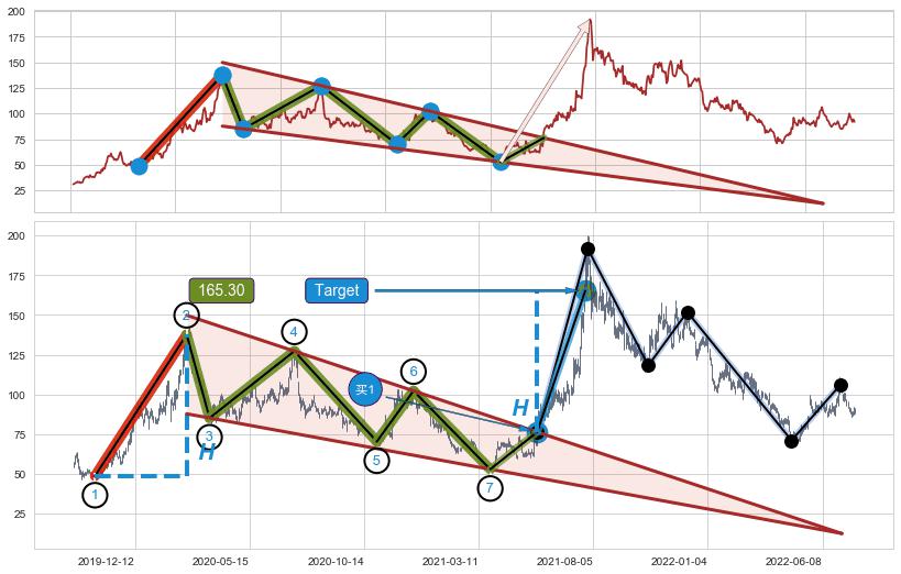 ➢ AI预测: 假定反转启动后, 第❷目标位置(2022-12-23, 95.15)