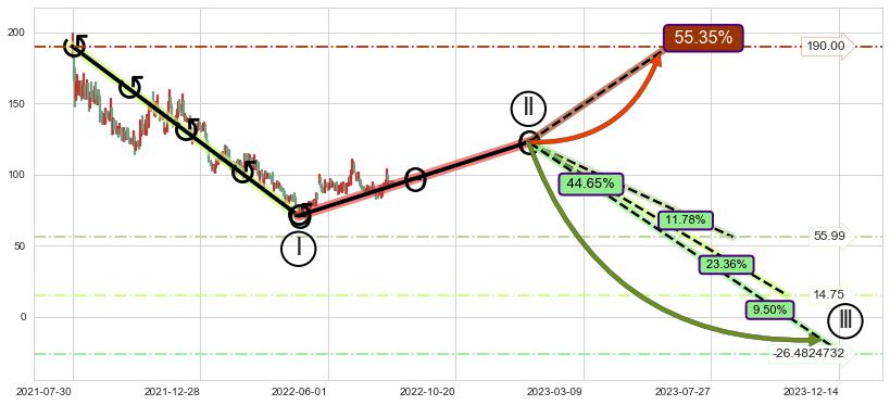 ➣ 循环浪继续向下【平均值】位置(2023-10-19, 14.75),匹配聚类样本比例52.33%, 可能性概率23.36%