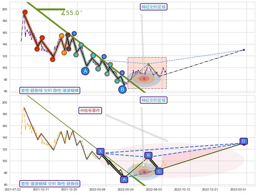 ➢ 谐波蝴蝶属【中级别信号事件】波浪理论属【长级别信号事件】中长周期组合信号事件,中长事件长度比46.43%