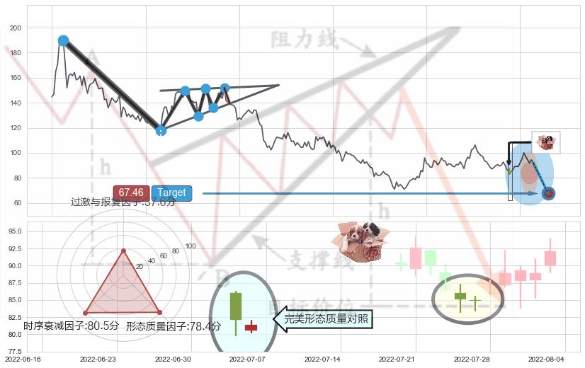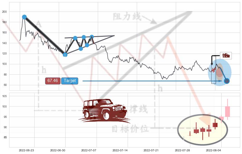 ➣ 【已确认突破】最后价格:91.96与最小【整理】第一目标价格→(2022-08-24: 67.46 )相较: 下跌空间【较小】