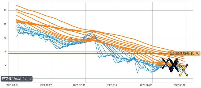 ➢ 40小时均线于(2022-07-21: 13.95)形成【死叉】基于【死叉历史模型】预测死叉后最低波谷价格: 11.98, 死叉后最低价格12.76,尚未达到预测最低波谷价格, 预期继续下跌