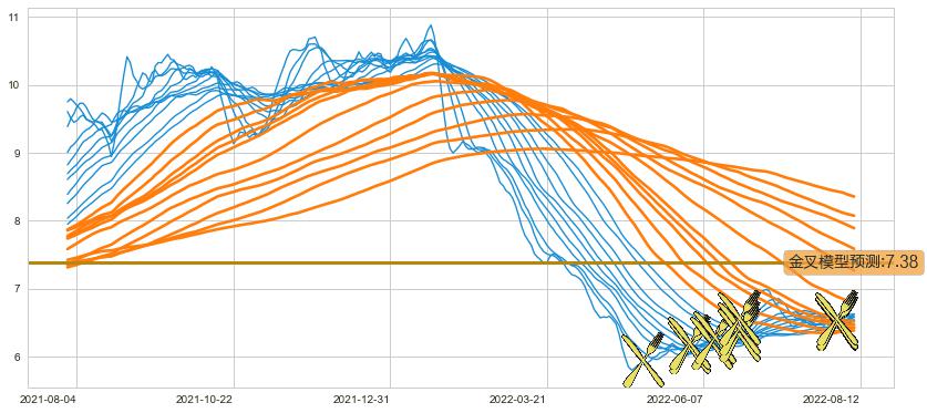 ➢ 70小时均线于(2022-06-22: 6.56)形成【金叉】基于【金叉历史模型】预测金叉后最高波峰价格: 7.94, 金叉后最高价格7.30,尚未达到预测最高波峰价格, 预期继续上涨