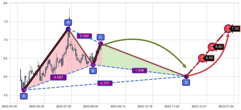➣ AI预测: 假定反转启动后, 第❶目标位置(2022-12-21, 6.50)
