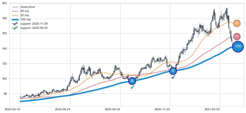➢ 65小时均线于(2022-06-15: 92.13)形成【金叉】基于【金叉历史模型】预测金叉后最高波峰价格: 125.54, 金叉后最高价格127.45,虽然已经到达预测最高波峰价格,但耗时间很短动能很强, 预期继续上涨