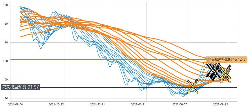 ➣ 40小时均线于(2022-07-27: 106.12)形成【死叉】基于【死叉历史模型】预测死叉后最低波谷价格: 89.12, 死叉后最低价格99.84,尚未达到预测最低波谷价格, 预期继续下跌