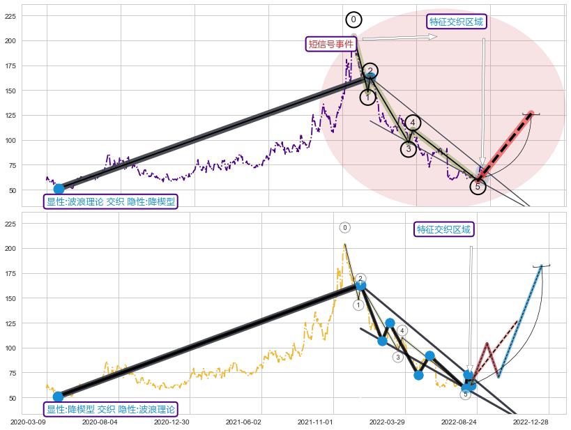 ➢ 波浪理论属【短级别信号事件】降楔型属【长级别信号事件】长短周期组合信号事件, 短长事件长度比30.68%