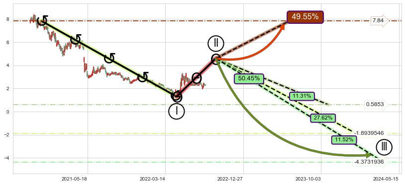 ➢ 循环浪继续向下【最低】位置(2024-05-15, -4.3731936),匹配聚类样本比例22.83%, 可能性概率11.52%